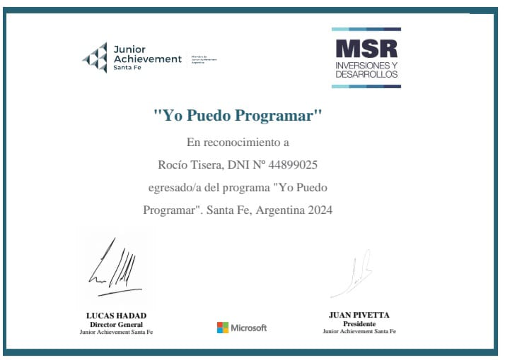 CURSO «YO PUEDO PROGRAMAR» R JUNIOR ACHIEVEMENT